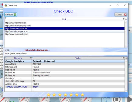 3.- SEO analysis, to check the SEO optimization of our WEBs